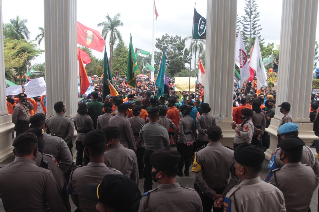 Aliansi Badan Eksekutif Mahasiswa Jambi Tolak Omnibus Law. - (Foto: ERAMADANI.COM). Foto: M. Rian Indra Eftritianto.