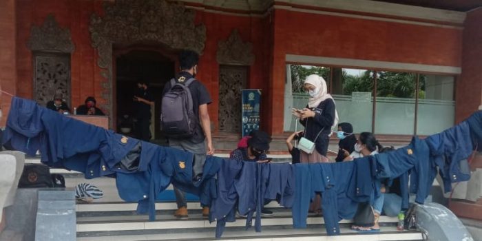 Dari hasil survei itu dan dengan kondisi pandemi Covid-19 yang masih membayangi Indonesia dan khsusnya Bali, mahasiswa Unud menggelar aksi gantung almamater di depan Rektorat Universitas Udayana.