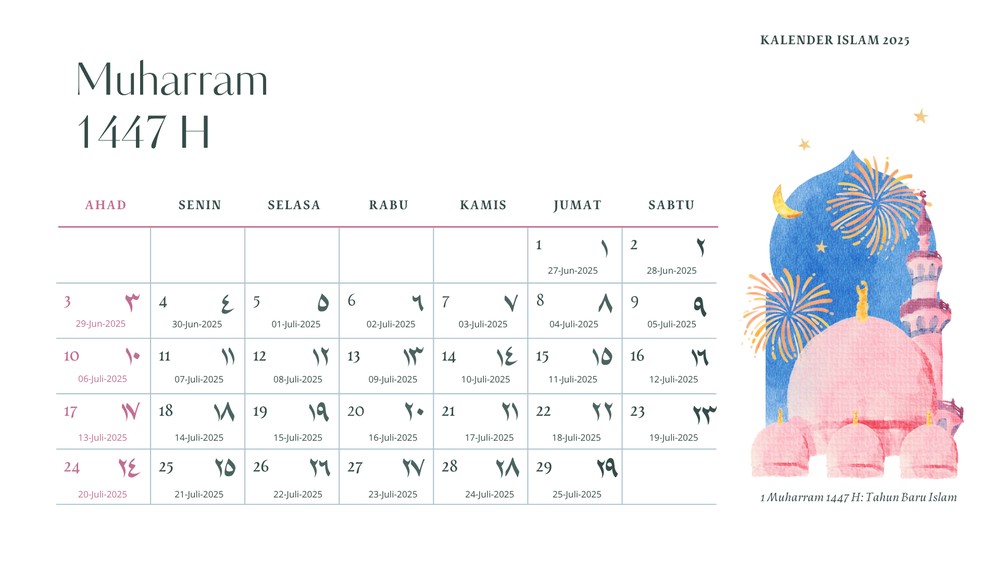 - 1 Muharram 1447 H: Jumat, 27 Juni 2025