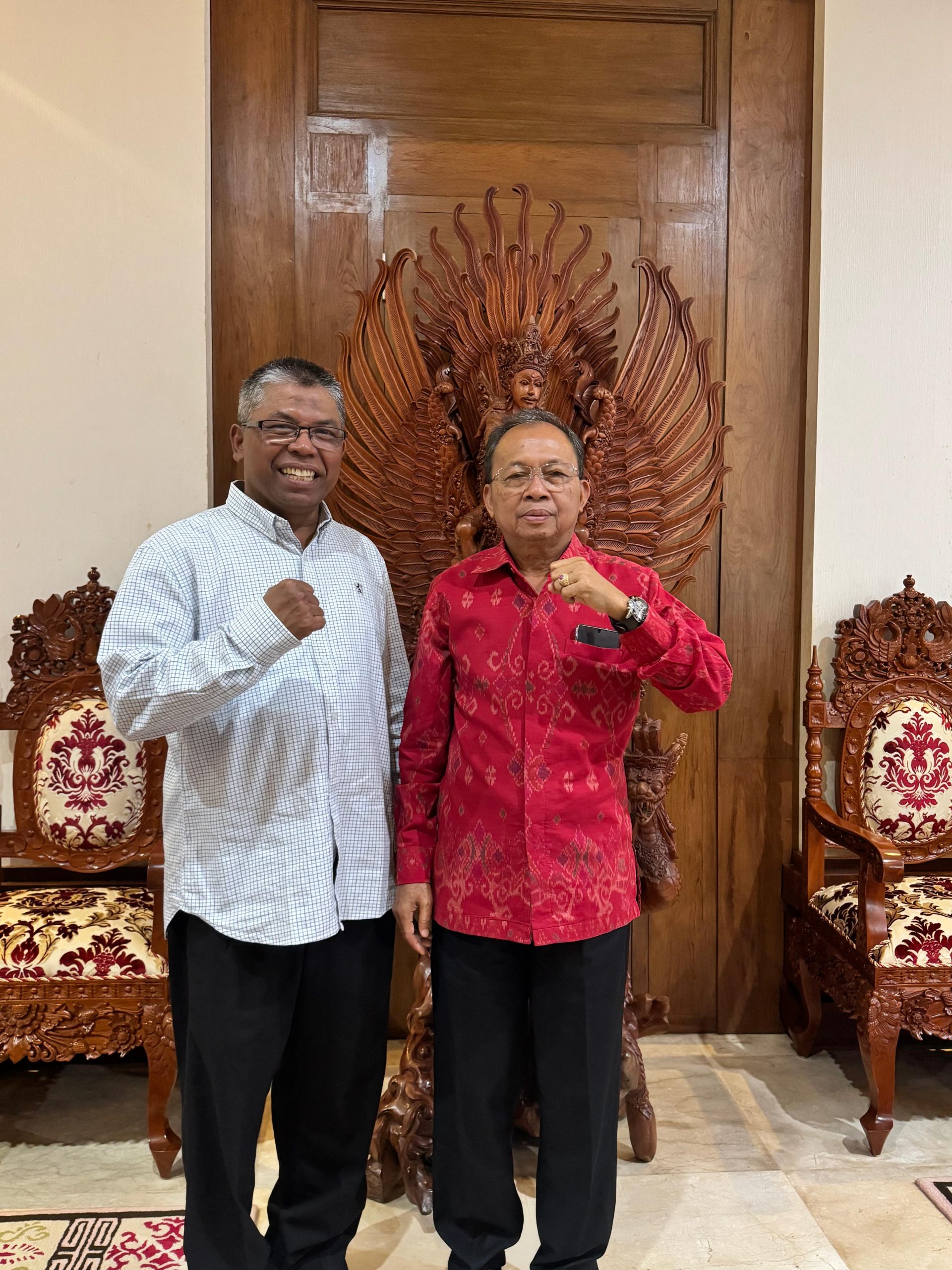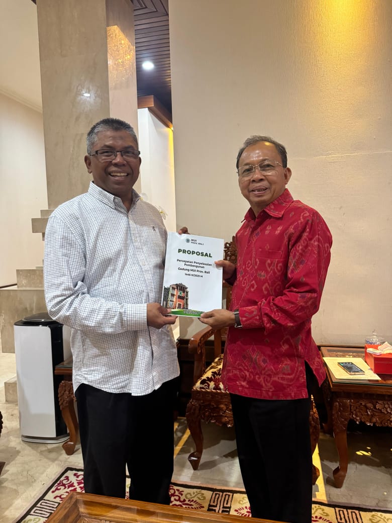 ERAMADANI.COM, DENPASAR – H. Mudjiono bertemu Gubernur Bali I Wayan Koster di Jaya Sabha untuk mendorong kelanjutan pembangunan Gedung Majelis Ulama Indonesia (MUI) Provinsi Bali yang terhenti sejak 2020.